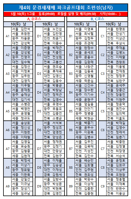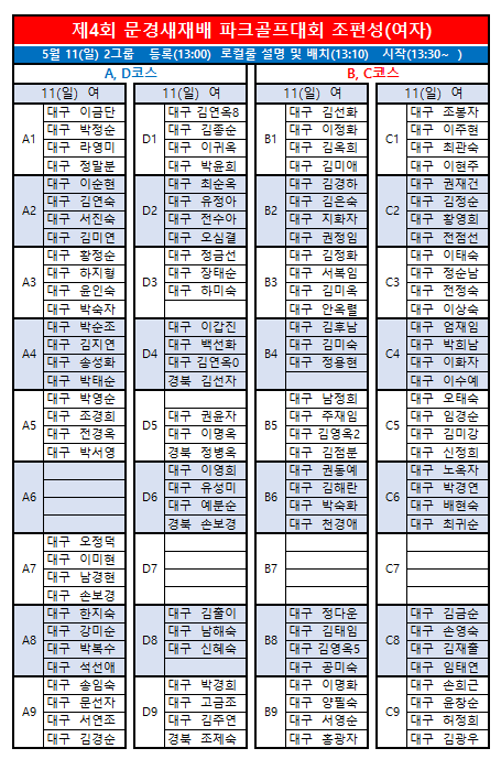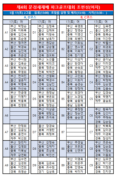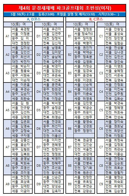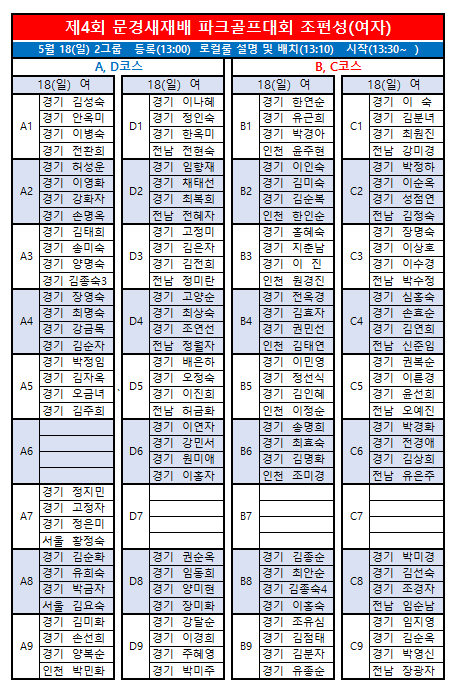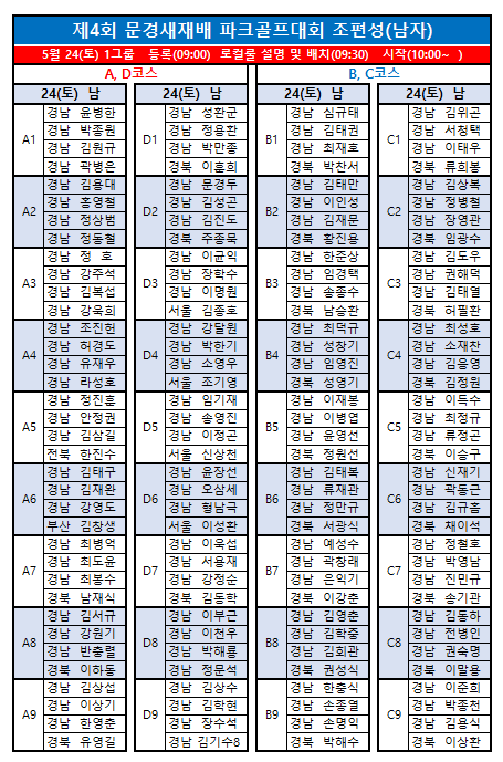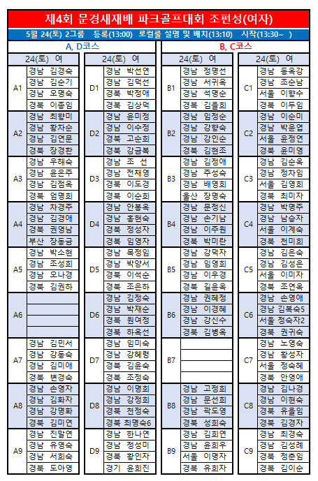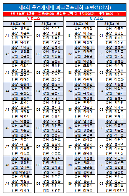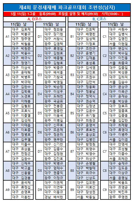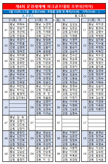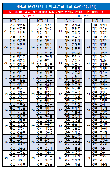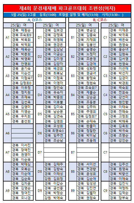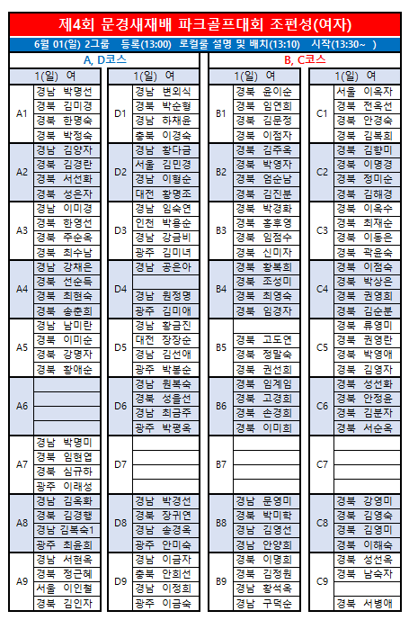 제4회 문경새재배전국파크골프대회 최종 조편성입니다.