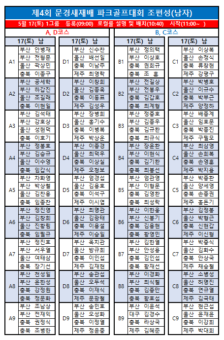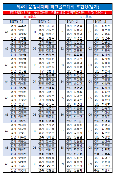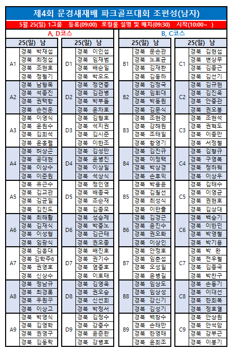 제4회 문경새재배전국파크골프대회 최종 조편성입니다.